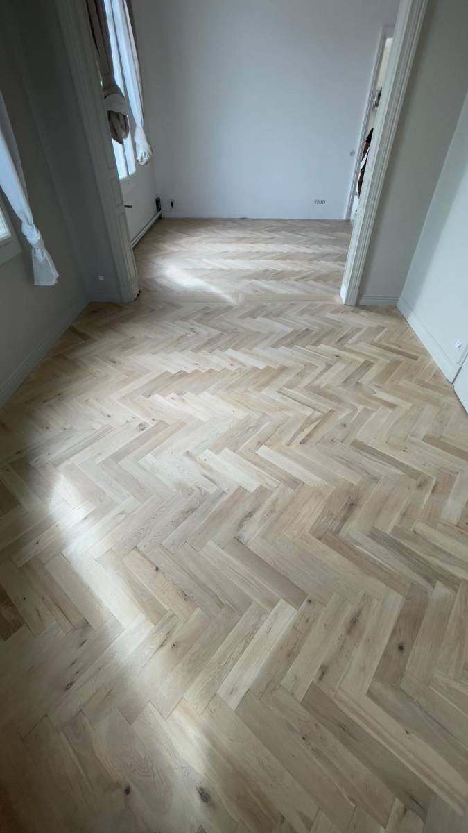 Découvrez le charme intemporel et l'élégance du parquet bâton rompu, une spécialité de RM Parquet à Bordeaux. Alliant tradition et modernité, ce style de parquet apporte une touche d'authenticité et de sophistication à votre intérieur. Grâce à l'expertise de RM Parquet, transformez votre espace de vie avec un revêtement de sol à la fois esthétique et durable.