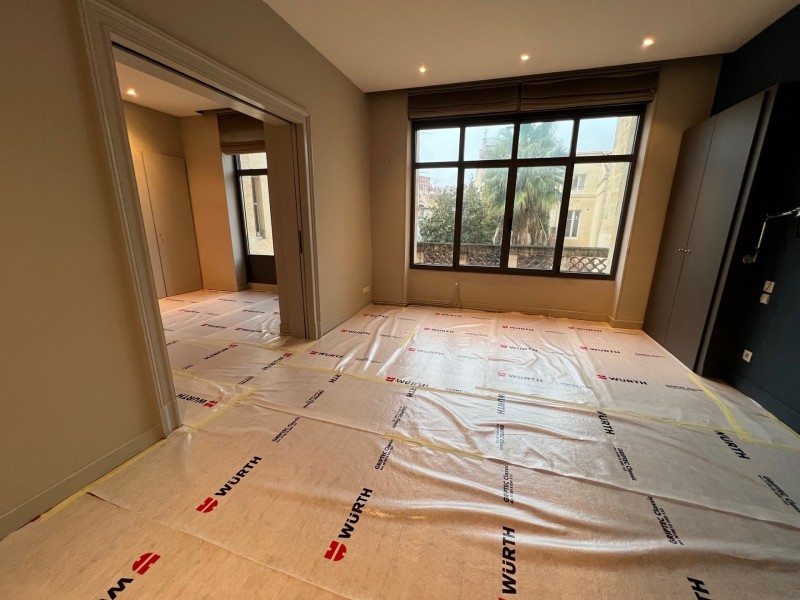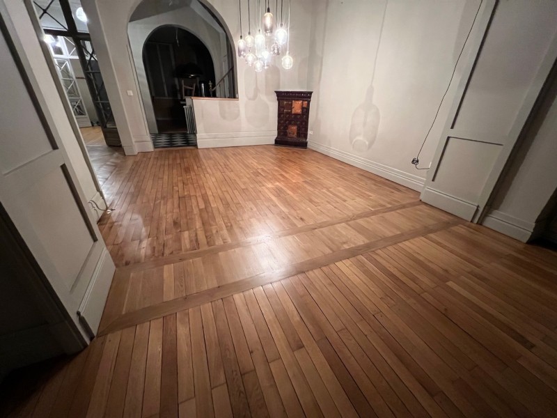 Nous retrouvons du parquet en chêne en pose à l’anglaise et en bâton rompu, du parquet contrecollé dans la cuisine et du parquet massif en pichpin sur les 2 étages de cet immeuble en plein Bordeaux.