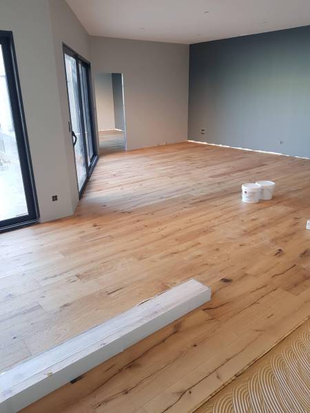 Ce parquet chêne contre collé Grano a été posé dans l'intégralité de la maison.